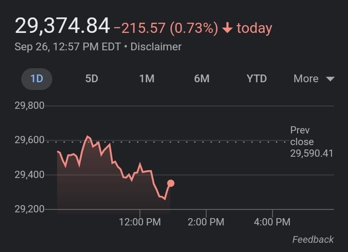 At the halfway point of today's trading, the Dow is now down 216 points.